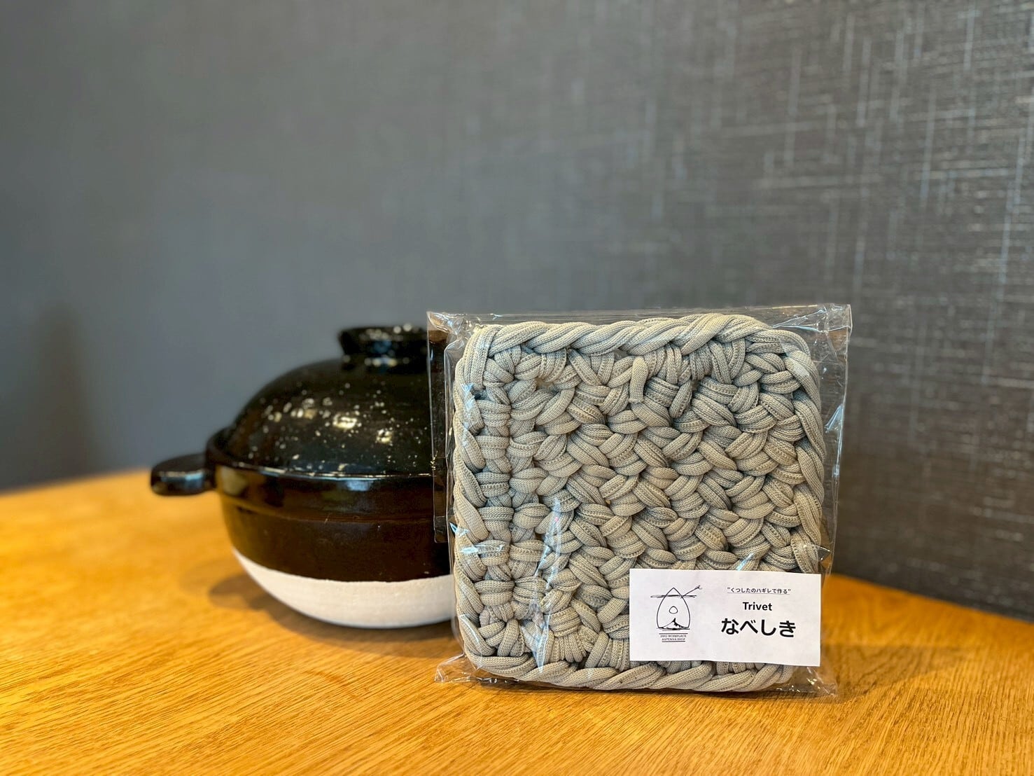 手編み鍋敷き【グレー 17cm✖️17cm】